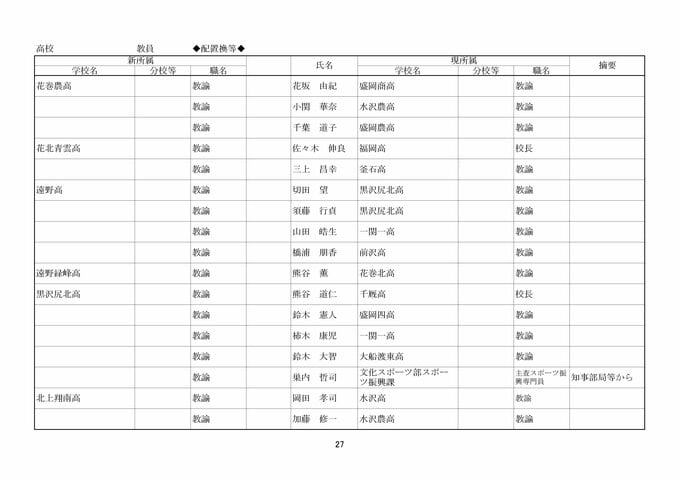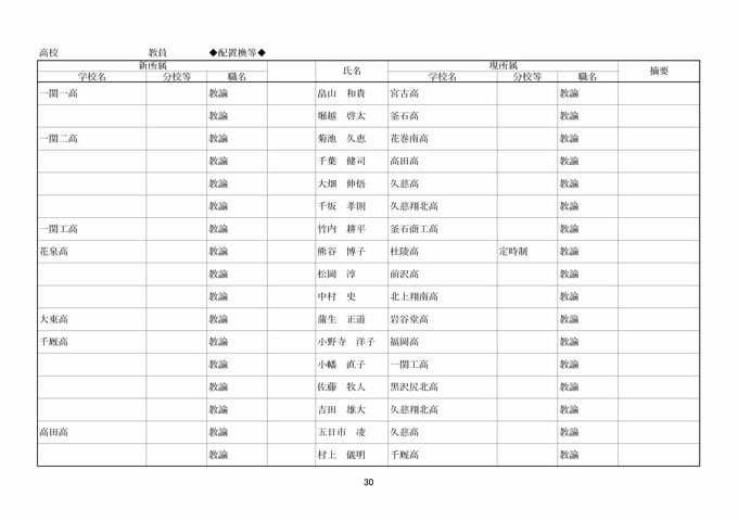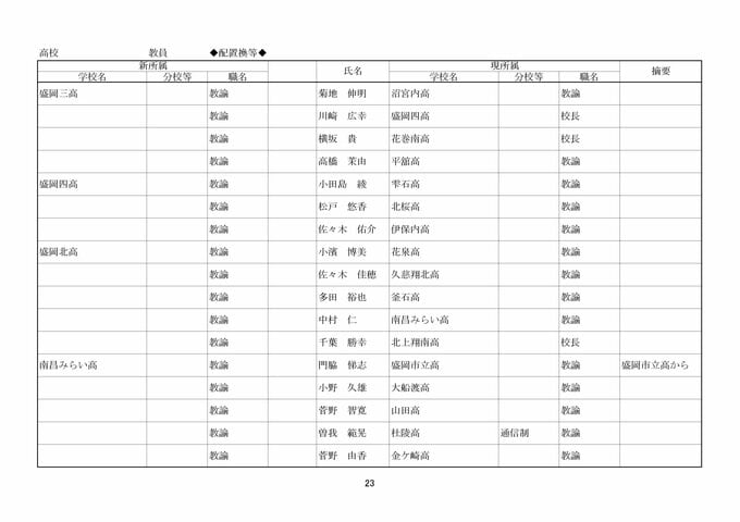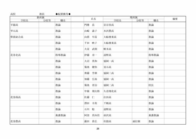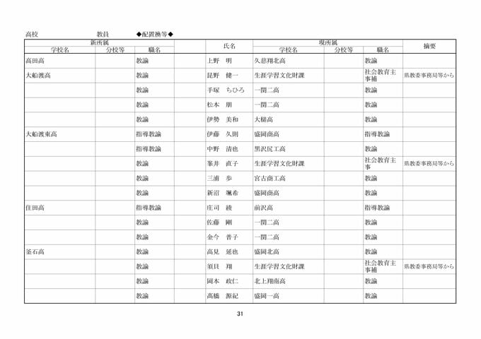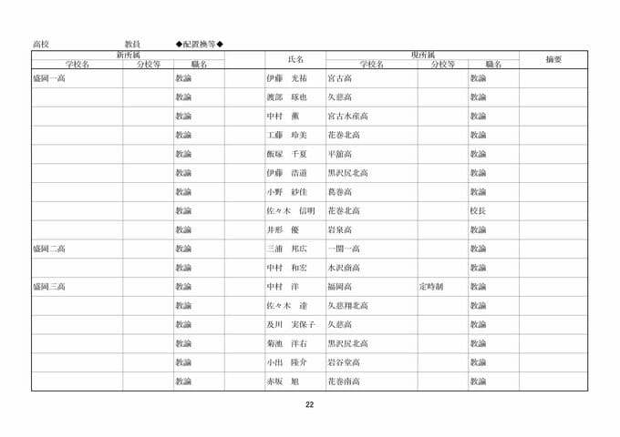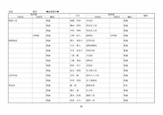岩手県教職員人事異動2026年度 あの先生はどこへ行っちゃうの?(県立高校、一関一高附属中学校、特別支援学校ほか)