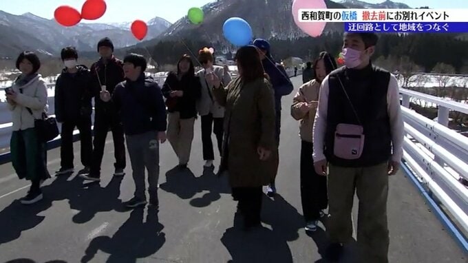 大規模な地すべり災害のために設置されていた西和賀町の仮の橋が撤去されることとなり、地域住民を招いたお別れイベントが開かれました。