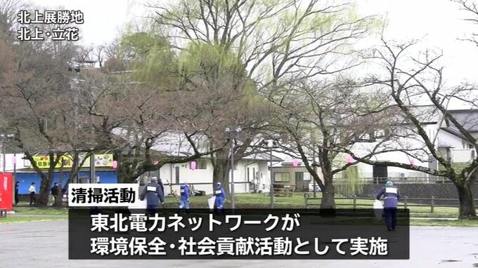 岩手県内有数のサクラの名所、北上市の展勝地で3日清掃活動が行われました。