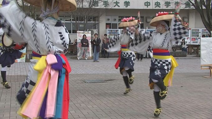 新年度を迎え、岩手大学の民俗芸能サークルが構内で新入生に向けて踊りを披露しました。