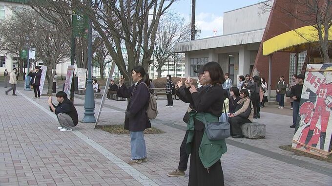 踊りが始まると新入生や在校生は足を止めて見入っていて、写真や動画を撮っている人もいました。