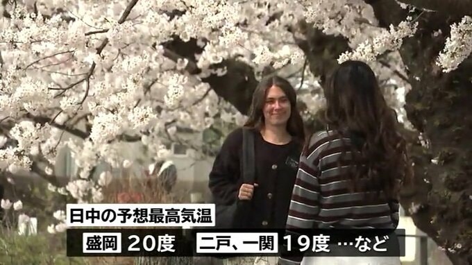 県内各地で暖かい朝 盛岡は最高気温20度予想 高松の池は満開のサクラ見頃、薄着で散歩楽しむ姿も 岩手 2026年4月14日(火) 10:35 国内 【画像はこちらから】 最低気温が13日を1.8度上回る、3度となった盛岡市では青空が広がり、高松の池には薄手の上着で散歩をしながら満開のサクラを眺めたり、写真を撮ったりする人の姿が見られました。 【画像はこちらから】 日中の予想最高気温は盛岡で20度、二戸と一関で19度などとなっています。 この後の県内は気圧の谷や湿った空気の影響で、14日の夜から15日にかけて曇りとなる見込みです。