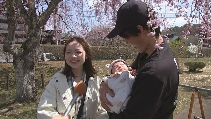 記者「生後一か月のあかちゃんと初めてのお花見ですけど…?」