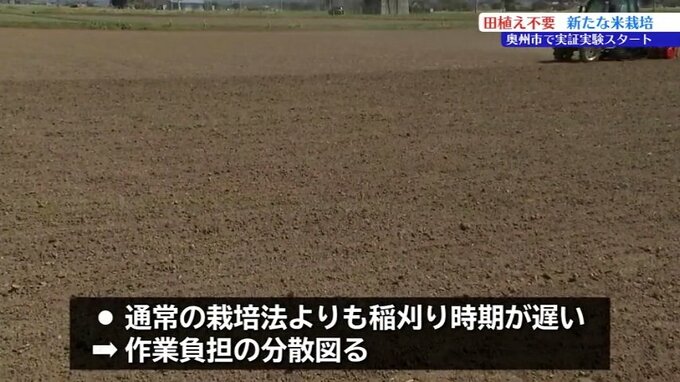 県が推奨しているこの栽培法は、田植え前に田んぼの土を耕す代かきや苗の育成がいらず、栽培の効率化や農家の負担を軽減できるのが利点です。