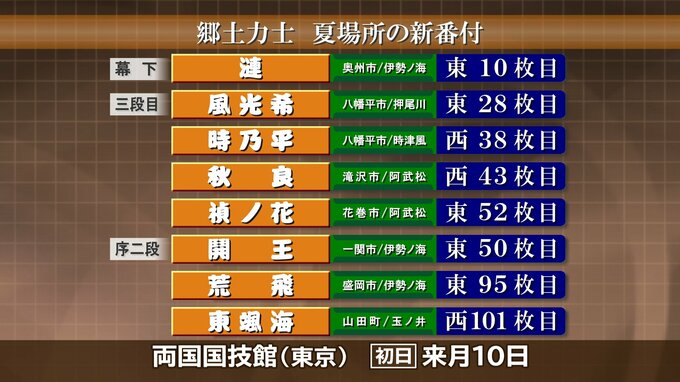 このほか、幕下の奥州市出身の漣は、自身最高位の東10枚目となりました。