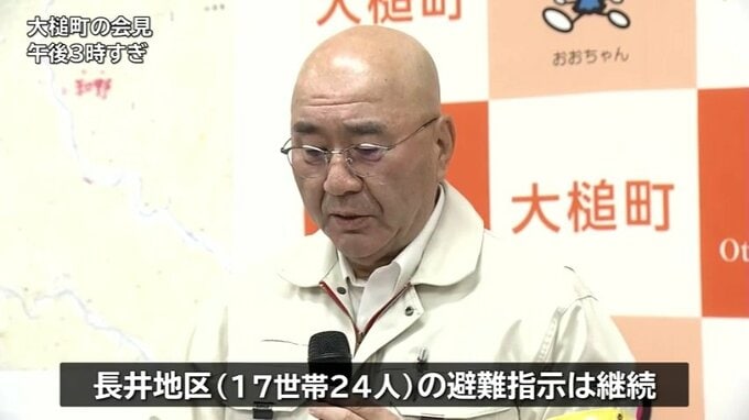 小鎚地区の火災に伴い、17世帯24人が対象となっている長井地区の避難指示は継続しています。