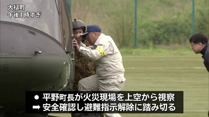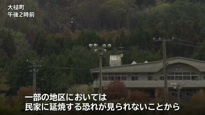「一部の地区においては民家に延焼する恐れが見られないことから、避難指示を一部解除します」