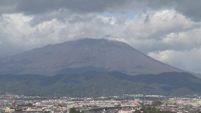 岩手山の初冠雪を観測 盛岡地方気象台 平年より4日遅く 山頂付近が雪化粧 2023年10月17日(火) 10:48 国内 天気 盛岡地方気象台は17日、岩手山(2,038m)の初冠雪を観測しました。去年より11日遅く、平年より4日遅い観測です。 盛岡から眺めた岩手県の最高峰は、山頂の火口周辺が白く雪に覆われていました。 盛岡から見た岩手山 17日