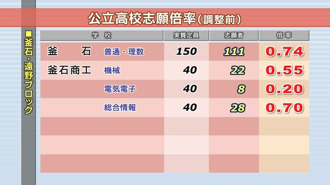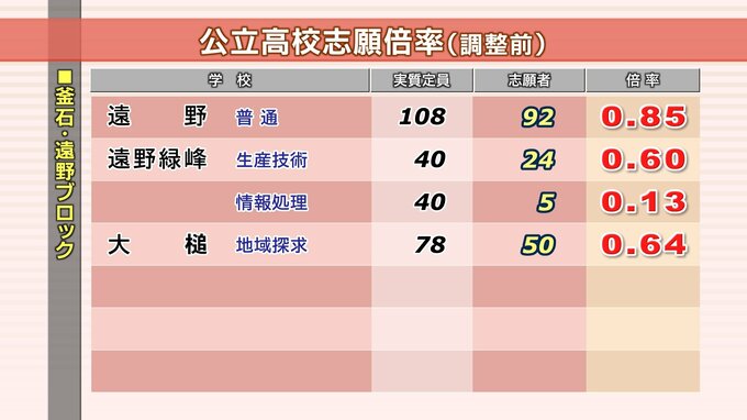 岩手県公立高校入試2024 調整前志願倍率 最高は不来方(人文・理数)の1.57倍 盛岡一1.13倍 平均は0.80倍で過去最低に【全校掲載・ブロックごとに一覧表で】
