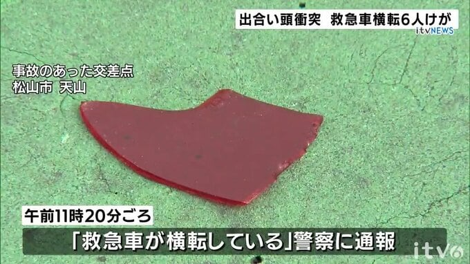 赤信号を走行中の救急車が車と衝突し横転 80代患者や付き添いの80代女性、救急隊員ら6人けが 愛媛 2024年2月25日(日) 19:02 国内 25日昼ごろ愛媛県松山市内の交差点で、患者を搬送中の救急車と乗用車が衝突する事故があり、搬送中の患者ら6人がけがをしました。事故があったのは松山市天山の交差点で、25日午前11時20分ごろ、通行人の男性…