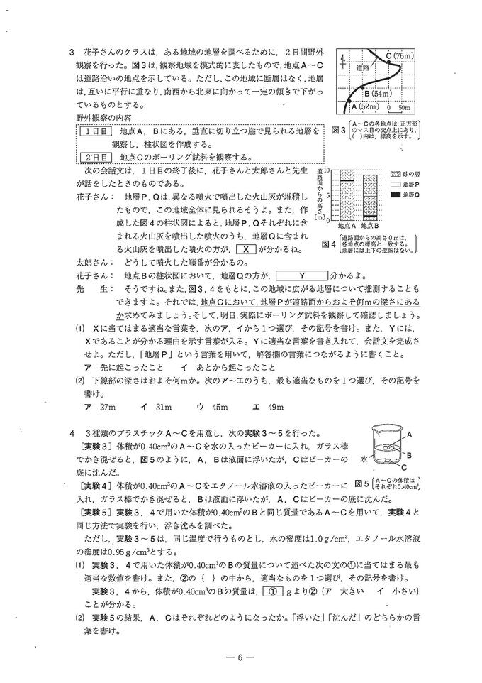 愛媛県立高校入試「理科」試験問題・解答速報【令和6年度・2024年度高校受験】