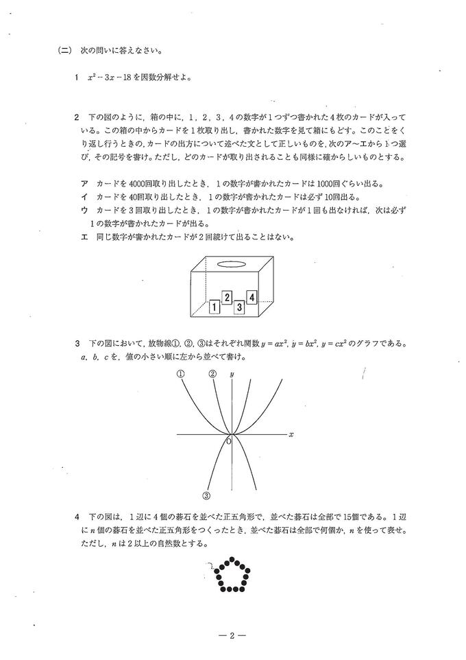 愛媛県立高校入試「数学」試験問題・解答速報【令和6年度・2024年度高校受験】