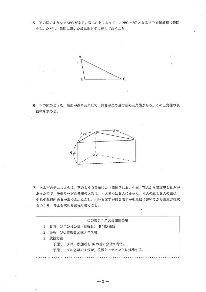 愛媛県立高校入試「数学」試験問題・解答速報【令和6年度・2024年度高校受験】