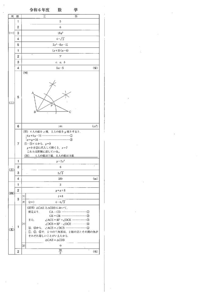 愛媛県立高校入試「数学」試験問題・解答速報【令和6年度・2024年度高校受験】