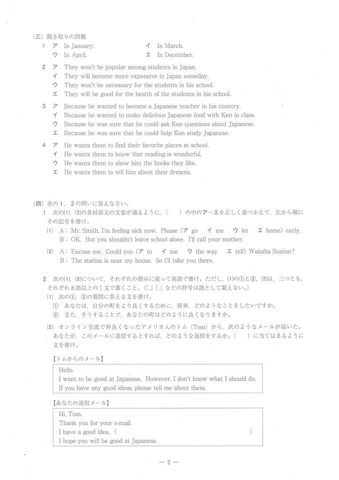 愛媛県立高校入試「英語」試験問題・解答速報【令和6年度・2024年度高校受験】