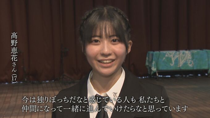 「1人じゃ乗り越えられないことも仲間がいれば乗り越えることもできるから、今は1人ぼっちだなと感じている人も私たちと仲間になって、一緒に進んでいけたらなと思っています」