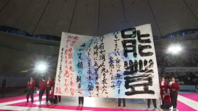 魂の叫びやメッセージを…「書道パフォーマンス甲子園」全国23校が出場 愛媛・四国中央市 2024年7月29日(月) 14:24 国内 高校生が音楽に合わせ巨大な紙に文字を書き上げていく「書道パフォーマンス甲子園」が、28日、紙のまち愛媛県四国中央市で開かれ全国から集結したチームが、熱戦を繰り広げました。今年で17回目となる大会に…