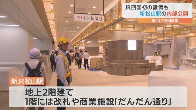 「建物の正面、北側ですね、こちらがメインになります。12区画、それと改札横に1区画、更には南側5区画ということで、合計18区画の商業施設となっております。名称でございますが『JR松山駅だんだん通り』ということで、伊予弁の、だんだん=ありがとうという意味合いを込めまして、この通り、この商業ゾーンで、松山の、愛媛の様々な場所に、人やモノが集う場所になりたいという思いからこの名称を付けております」
