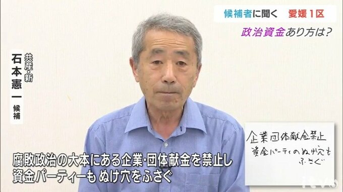 愛媛県内小選挙区の候補者に、争点に対するそれぞれの考えを聞きました。今回は愛媛1区です。