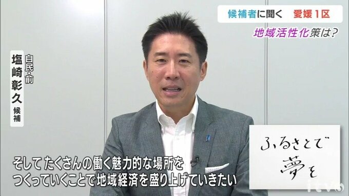 「四国には新幹線がありません。そのため、県外や海外から愛媛や四国にたくさんの方が来ていただけるように空港の活性化を図り、にぎわいをつくり、また仕事や宿泊ができるようにしていきます。そして、愛媛県の農林水産物の輸出をもっと図っていけるように、さらに空港の活性化を図っていくことで、地域の経済を発展させ、活性化を促していきます」