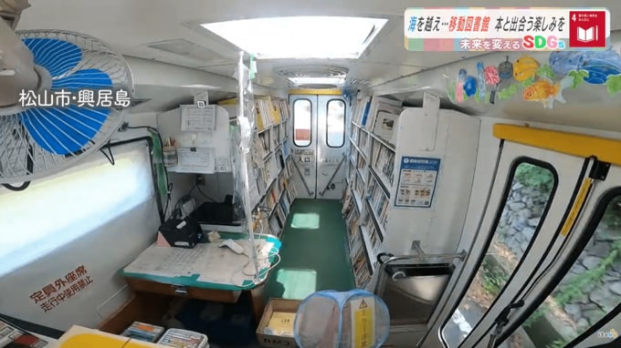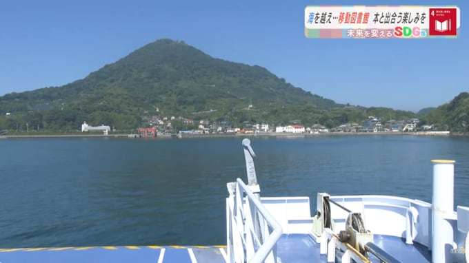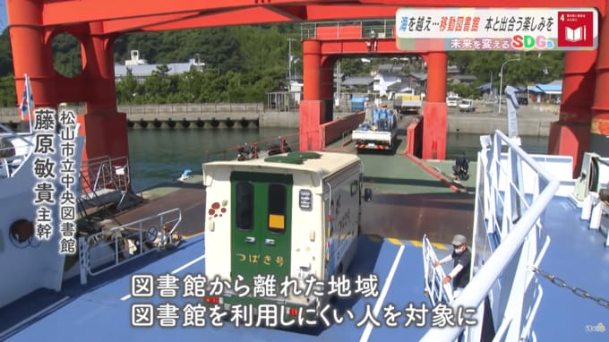 興居島に向かう、愛媛県松山市の移動図書館「つばき号」です。