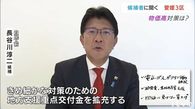 長谷川淳二候補のキーワードは「電気・ガス・ガソリン補助継続、給食費・農林水産業への支援、物価に負けない賃上げ」です。
