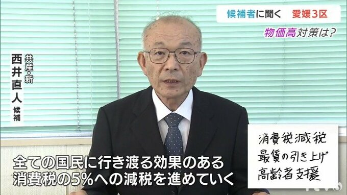 西井直人候補のキーワードは「消費税の減税、最賃の引き上げ、高齢者支援」です。