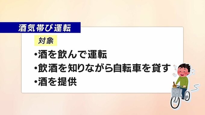 この他、自転車の酒気帯び運転についても、酒を飲んで運転した人だけでなく酒を飲んでいると知っていながら自転車を貸した人や、酒を提供した場合も罰則が設けられています。酒気帯び運転では、3年以下の懲役または50万円以下の罰金が科されます。