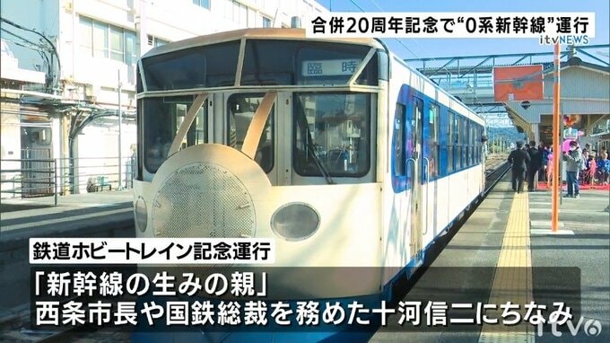 初代新幹線「0系」ホビートレインが登場 西条市合併20周年記念で催し JR四国社長ら祝う 2024年12月1日(日) 18:17 国内 愛媛県西条市の合併20周年を記念するイベントが1日、JR伊予西条駅で開かれ、初代新幹線「0系」をイメージした鉄道ホビートレインが運行されました。西条市の合併20周年を記念するイベントには、地元出身の…