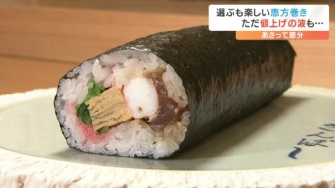 節分の定番「恵方巻」 原材料価格の高騰で値上げの波も… 去年より3センチ短くした店も 愛媛 2025年1月31日(金) 19:02 国内 今や節分の定番は「恵方巻き」です。様々なラインナップで選ぶ楽しさがある一方、原材料価格の高騰で値上げの波も押し寄せているようです。愛媛県松山市二番町にある寿司店「寿司きんぼし」。こちらでも、節分…