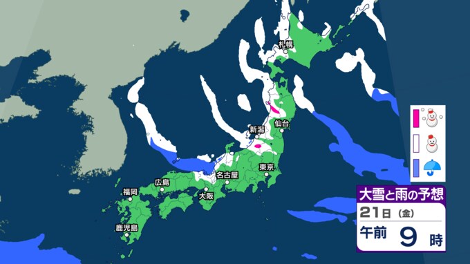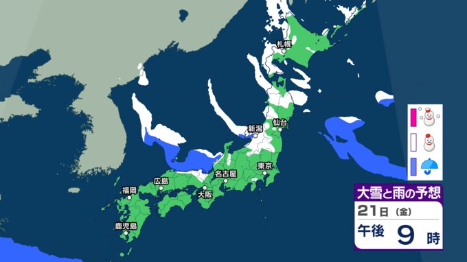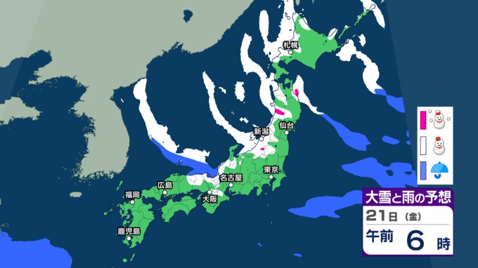 【大雪情報】強烈寒波で『警報級の大雪』の可能性 24時間で最大70センチ降雪予想 関東、北陸、東海、近畿、中国、四国、九州などは『かなりの低温』【雪のシミュレーション】2月17日9時更新 2025年2月17日(月) 09:11 国内 雪のシミュレーション【2月17日~2月22日】2月21日