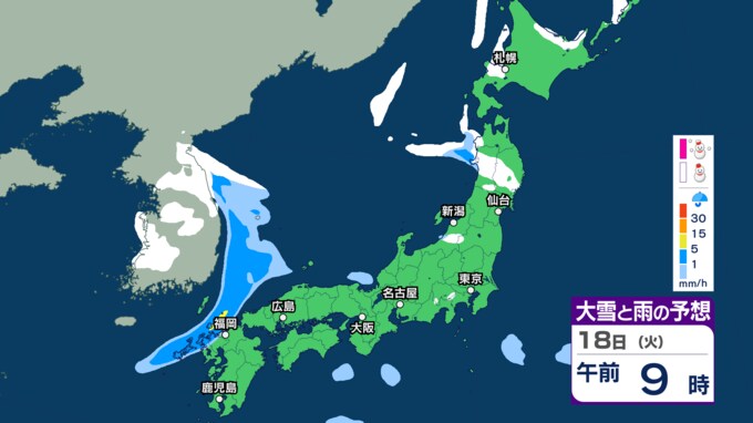 【大雪情報】全国的に気温低く大雪となる所も…多いところで東北30cm、関東甲信40cm、中国50cm、四国15cm、九州40cmの降雪予想【気象庁 全般気象情報 早期注意情報】