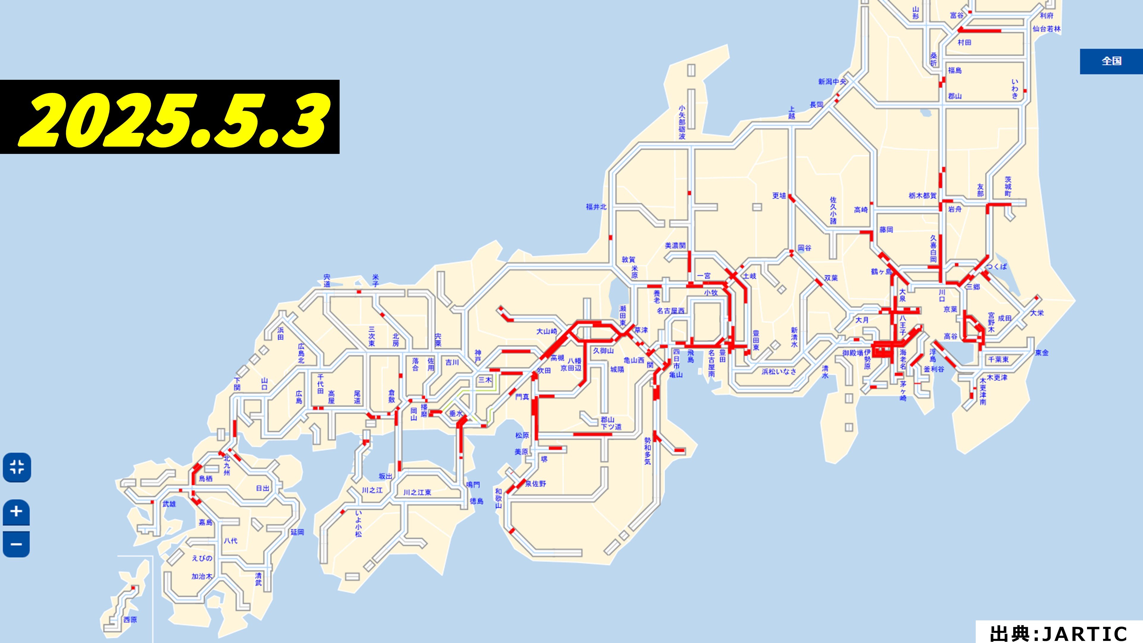 渋滞予測一覧 5月3日(土)