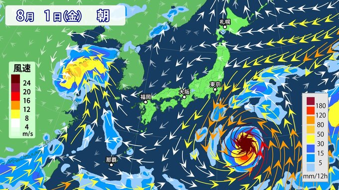【ダブル台風】台風8号復活 大型で強い台風9号「最大瞬間風速55m」 今後の進路・勢力は?【気象庁・台風情報】進路予想、雨と風のシミュレーション