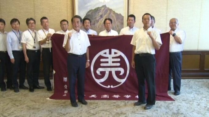 「まずは1勝、全員で勝ち取りに行く」7年ぶり7回目の夏の甲子園 出場の済美に県が応援旗 愛媛 2025年7月31日(木) 16:58 国内 来月5日に開幕する夏の甲子園大会への出場を決めた済美野球部に、愛媛県から応援旗が贈られ、キャプテンらが決意を新たにしました。贈呈式には29日の愛媛大会決勝戦で、7年ぶりに甲子園の切符を掴んだ済美高校…