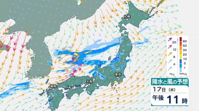 【気象情報】18日夜にかけ前線南下…落雷、竜巻、急な強い雨に注意を 気象庁「大雨と雷及び突風に関する全般気象情報」【雨と風のシミュレーション】