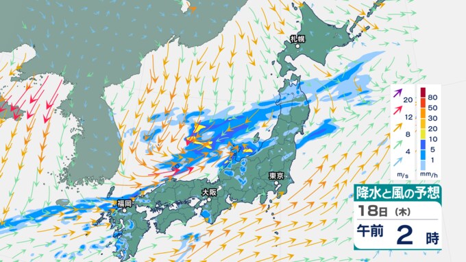 【気象情報】18日夜にかけ前線南下…落雷、竜巻、急な強い雨に注意を 気象庁「大雨と雷及び突風に関する全般気象情報」【雨と風のシミュレーション】