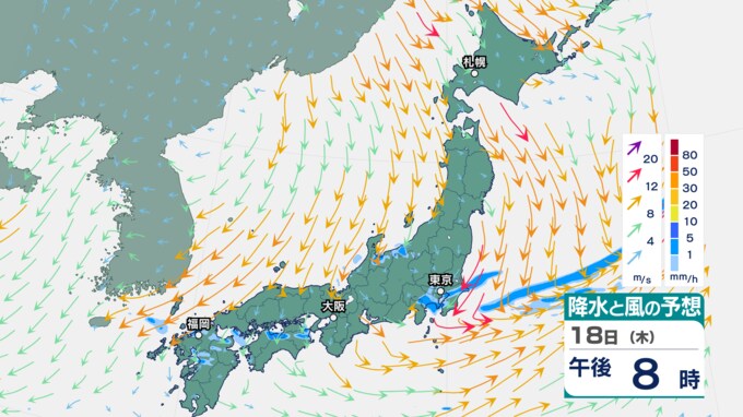 【気象情報】18日夜にかけ前線南下…落雷、竜巻、急な強い雨に注意を 気象庁「大雨と雷及び突風に関する全般気象情報」【雨と風のシミュレーション】