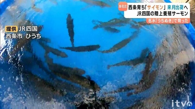 JR四国は、鉄道事業以外での収益確保を目指す中、今年4月から西条市内で名水として名高い地元の地下水、「うちぬき」を利用したサーモンの陸上養殖を行っていて、およそ4700匹を育てています。