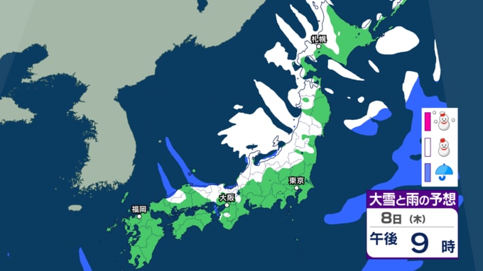 【大雪情報】成人の日・12日頃にかけて日本付近に強い寒気「10年に1度レベル」大雪か 日本海側を中心に北海道、東北、北陸、東海、近畿、中国、四国、九州の広い範囲で雪予想【気象庁・早期天候情報】 2026年1月8日(木) 15:30 国内
