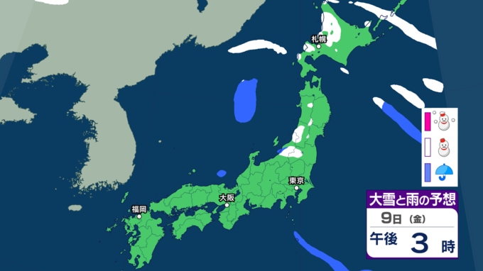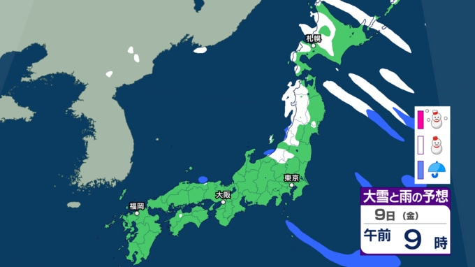 【大雪情報】成人の日・12日頃にかけて日本付近に強い寒気「10年に1度レベル」大雪か 日本海側を中心に北海道、東北、北陸、東海、近畿、中国、四国、九州の広い範囲で雪予想【気象庁・早期天候情報】 2026年1月8日(木) 15:30 国内