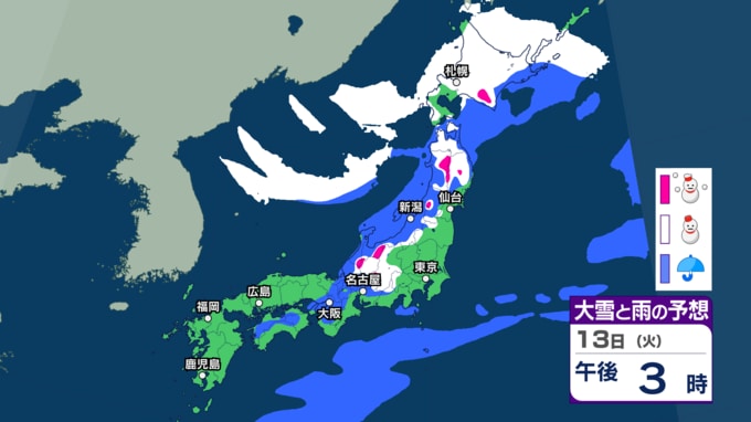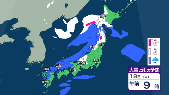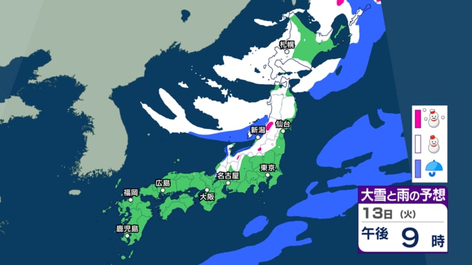 【大雪情報】12日(月)にかけて日本海側中心に大荒れ「 暴風雪・高波・大雪」に備えを 東北地方100㎝、関東甲信、近畿地方は50㎝の降雪予想 【気象庁 雪風シミュレーション/ 10日午後9時更新】 9時間前