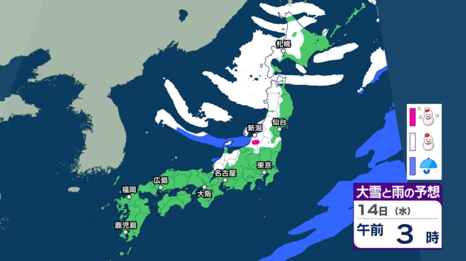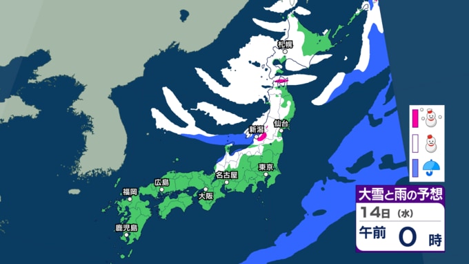 【大雪情報】強い冬型の気圧配置へ→12日にかけ全国的に大荒れ 降雪予想は東北、北陸、東海 80cm 近畿60cm 北海道、関東甲信、中国:50cm 車の運転は冬用タイヤ必須 立ち往生に備えを【気象庁雪風シミュレーション/11日正午更新】 7時間前