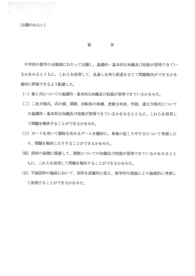 全科目掲載!数学・解答例とねらい~