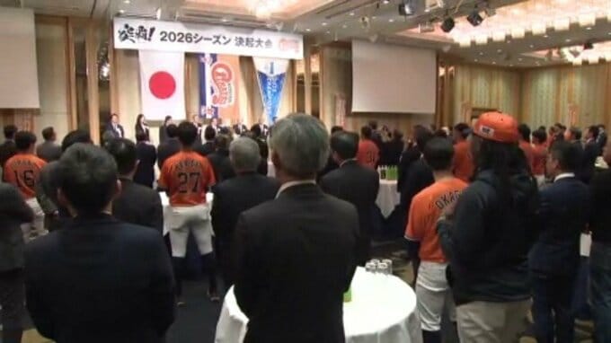 「力強い力強い力強く、日本一まで駆け上がり、開幕戦からぶっちぎりでエンジン全開で頑張る」愛媛MP 2026年シーズンに向けて決起大会 2026年3月12日(木) 17:45 国内 昨シーズン、10年ぶりに独立リーグ日本一を達成した愛媛マンダリンパイレーツが昨夜、愛媛県松山市内で決起大会を開きました。選手・スタッフなどおよそ230人が参加した決起大会では、まず、後援会の本田元広…