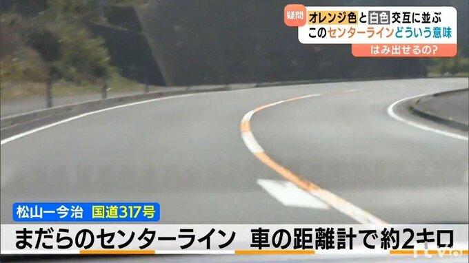 その一部に、車の距離計でおよそ2キロ、まだらのセンターラインが引かれています。