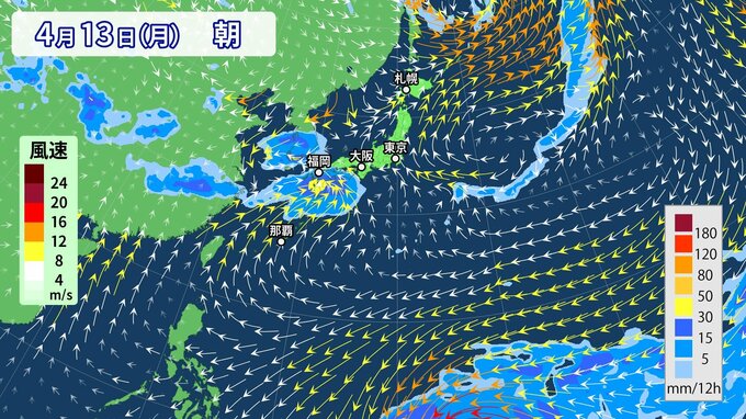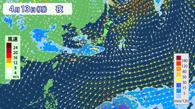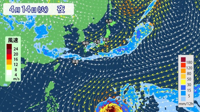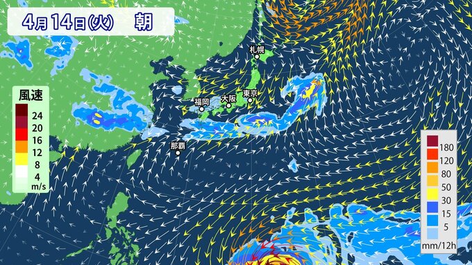 3. 【台風のたまご=熱帯低気圧】が発生?日本のはるか南に「反時計回りの風と雨の渦」来週にかけて日本の南へ北上か【4月19日(日)朝まで・雨と風のシミュレーション】