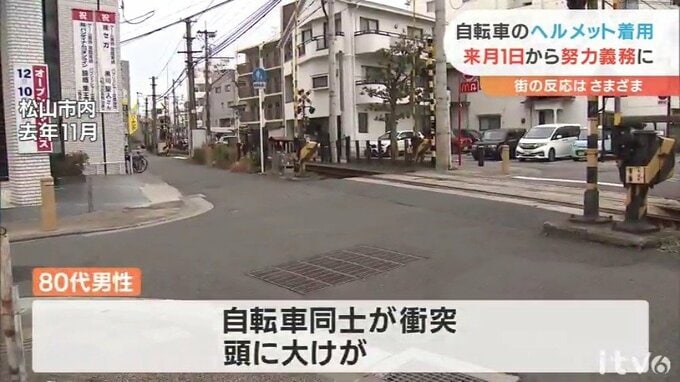 また11月には、松山市内で自転車同士が衝突し、80代の男性が頭に大けがをしました。