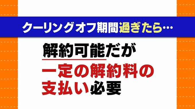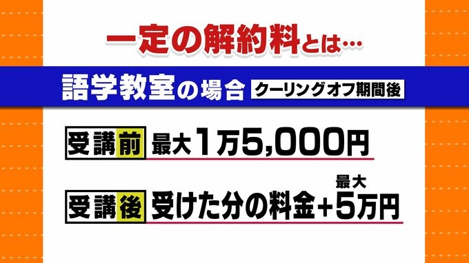 「そうですね。そういった場合、クーリング期間を過ぎても解約は可能ですが、一定の解約料の支払いは必要となります。7つのサービスのうち、一部ですがまとめました。例えば語学教室の場合、クーリングオフ期間を過ぎても授業を受ける前だと最大で1万5000円。授業を受けている場合、受けた分の授業料と最大で5万円の支払いで済みます。これ以上の請求が来ても支払う義務はありません」
