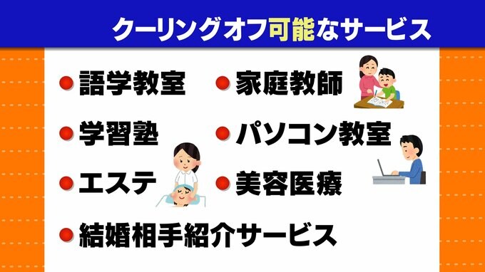 「金額は指定された7種類のサービスでそれぞれ違いますし、一部例外もありますので、消費者庁のHPなどでご確認ください。ちなみに、7種類に含まれていないスポーツジムなどはどうなるんですか?」